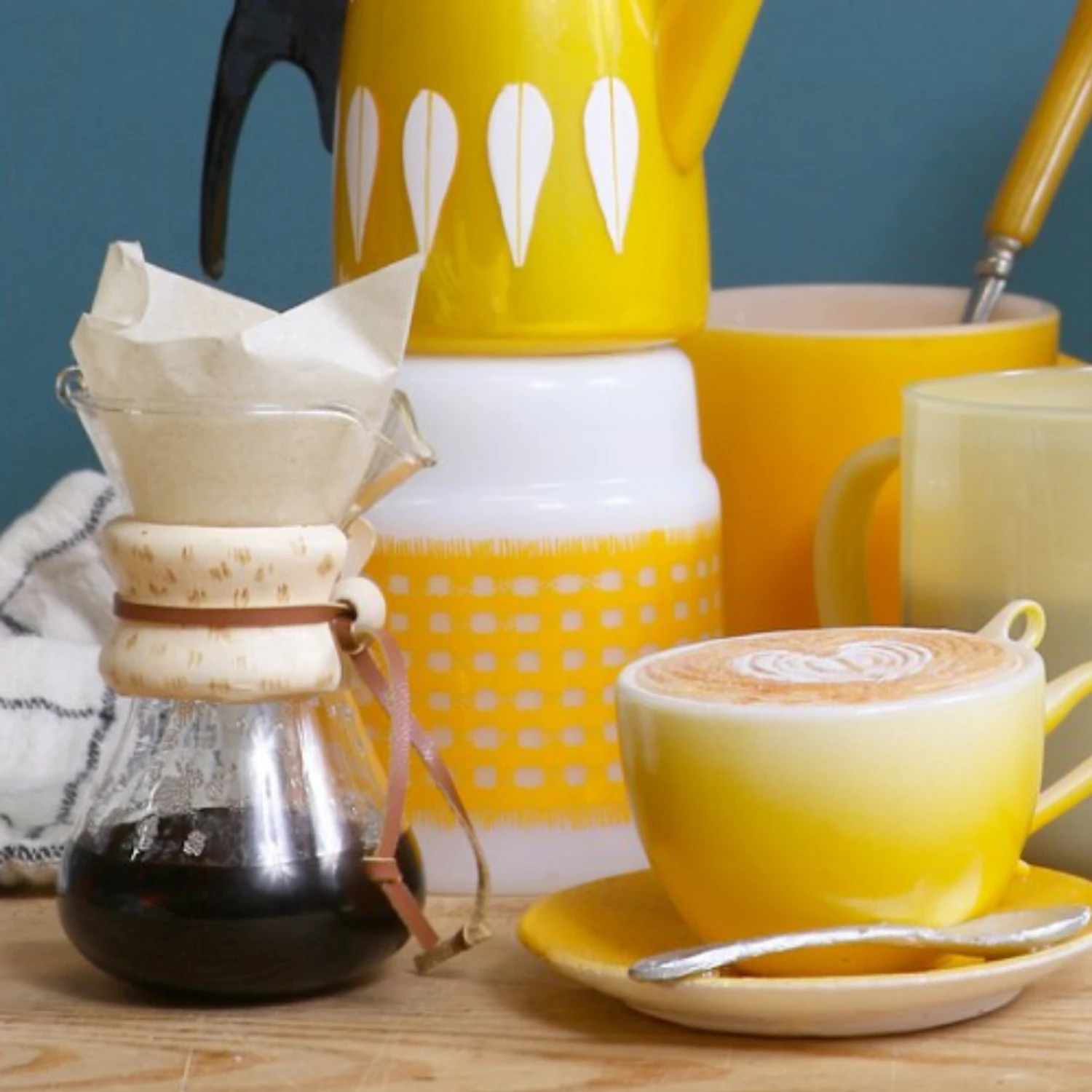 Calling all coffee lovers! This delicious ornament makes us want (another) cup of coffee! It features a glass pour over container filled with brown liquid, the wooden collar and leather accent with a paper strainer at the top! This would make a lovely gift for your favorite barista! Made by Cody Foster. Made of glass. Dimensions: 3″L x 2.25″W x 4.5″H. Item #: GO-8814