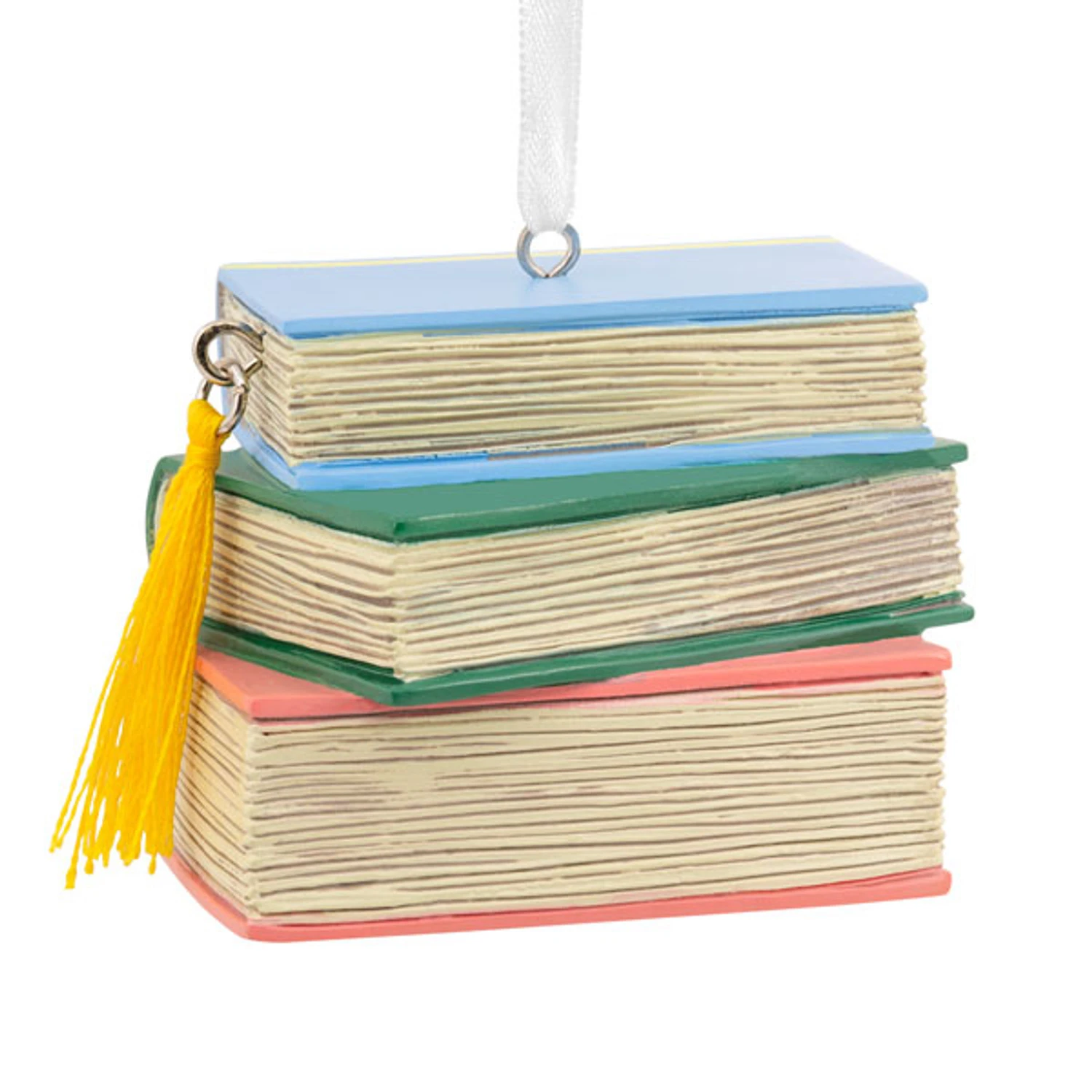 This ornament features a stack of colorful books and one has a yellow tassel attached to the book mark sandwiched between pages! Made by hallmark. Made of resin. Dimensions: 2″ x 2.25″ x 1.75″. Item #: 1HGO2383