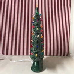 Large Flat Ceramic Lighted Window Or Mantel Christmas Tree 19″