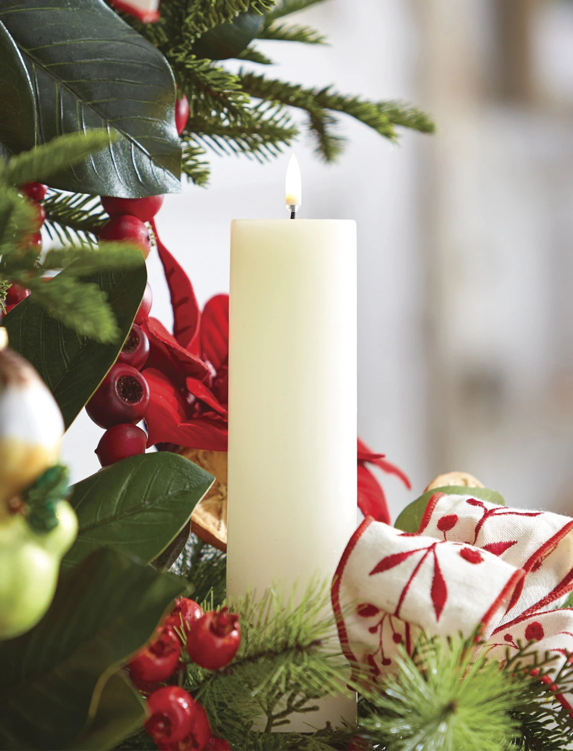 Spruce up your mantle with this stunning tall pillar candle! It features a new type of flame that has a light inside that flickers, different from the moving flame! Made by Raz Imports. Made of wax.. Requires 2 AA Batteries, not included. Remote Ready. 6 Hour Timer Repeats Every 18 Hours. Battery Life Approx 400 Hours. Can Be Used with Remote #4034520. Color: Ivory Dimensions: 2.25″ x 9.75″. Item #: 4034509